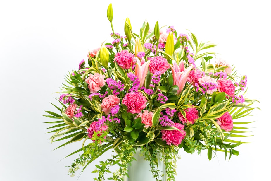 かわいらしさと華やかさを兼ねたスタンド花です。