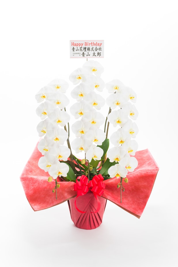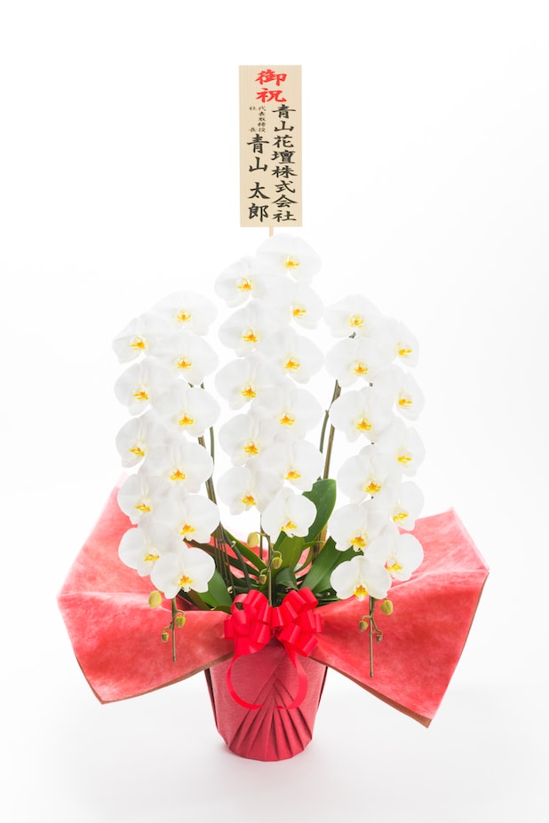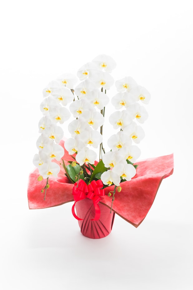 ちょっと見栄えを上げたい、他社には少し差をつけたいなど、シルバー胡蝶蘭よりも、輪数、高さ、ボリュームなどでワンランク上の胡蝶蘭をご用意いたしました。