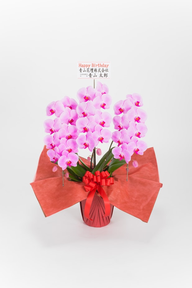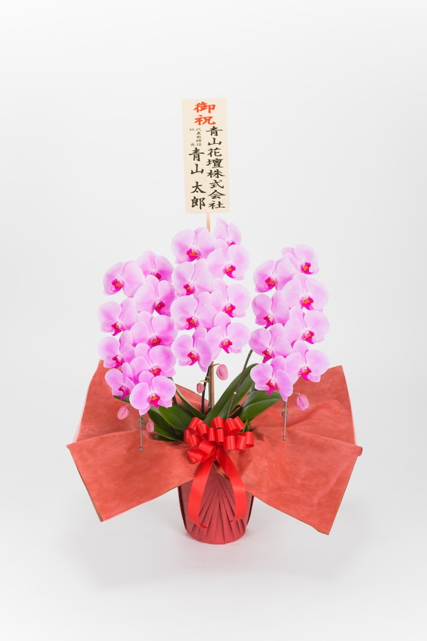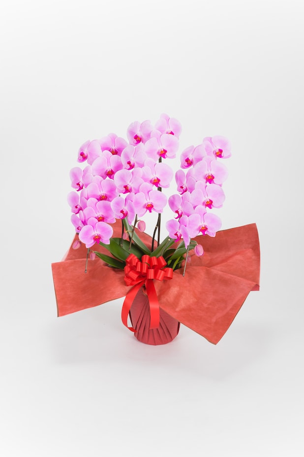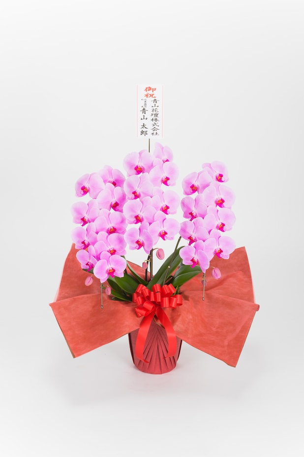 鮮やかなピンクが特長のこちらの胡蝶蘭は、高級感のあるエレガントな姿で祝福ムードを盛り上げます。
