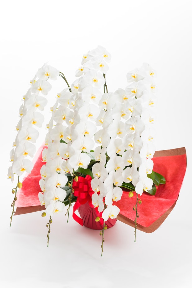 一鉢あたり90 ‐100輪の花をつけた特大サイズの胡蝶蘭を厳選してお送りします(つぼみ含む)。特大サイズの最高級品のため、数に限りがあります。余裕をもったご注文をお願いしております。