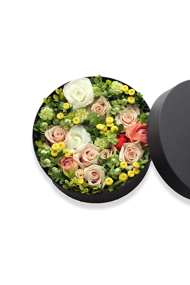 (お花の種類に合わせて、使用する箱の形を変えさせていただいております)